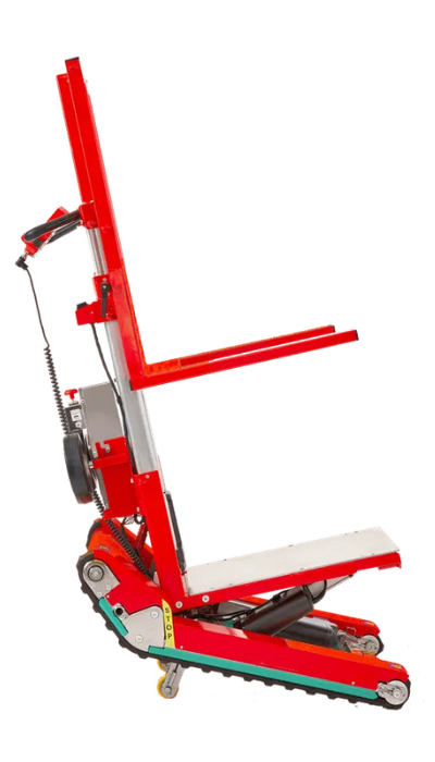 La carretilla subeescaleras ideal para transportar cargas pesadas de hasta 400 kg por cualquier tipo de escalera y rellanos estrechos.