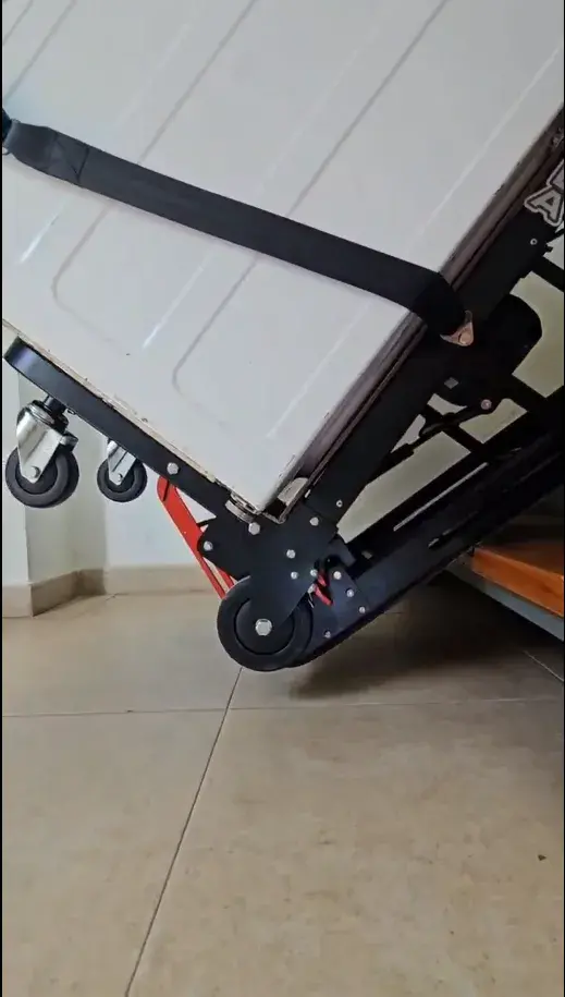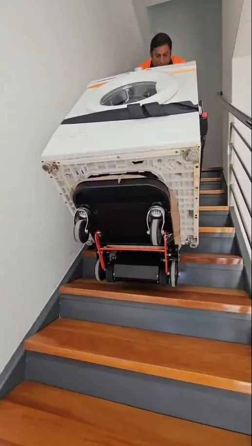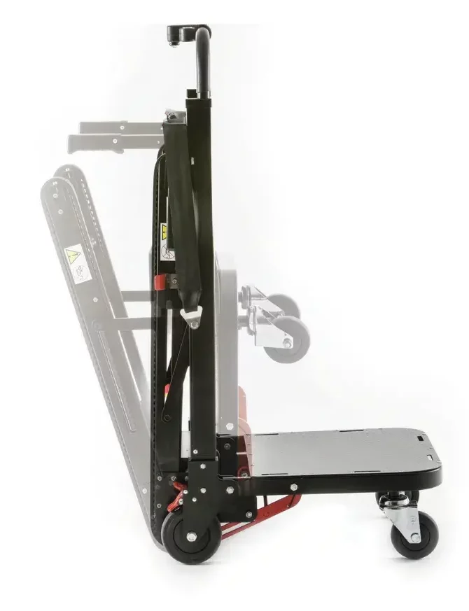 La carretilla ultra ligera con orugas «Gorilla 160» es una máquina diseñada para el transporte de cargas livianas. Compacta y plegable, reduce el espacio que ocupa cuando no se utiliza. Dispone de orugas de goma para el agarre en escaleras y cuatro ruedas, dos de ellas pivotantes, para facilitar el manejo en superficies planas. Los mandos están situados en la interfaz de control para facilitar el manejo motorizado por parte del operador.