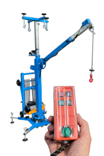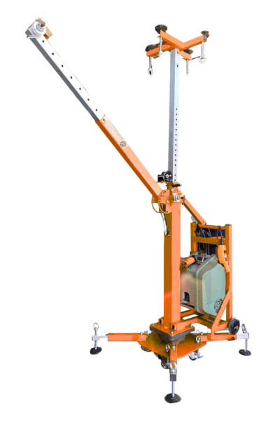 La mini grúa plegable ideal para subir y bajar cualquier tipo de mercancia en general a gran altura: material de construcción, ventanas, vidrios, mármoles, carpintería metálica, pérgolas, vigas de madera, toldos, motores de ascensor, mobiliario y … ¡No hagas más esfuerzos innecesarios en tu trabajo!